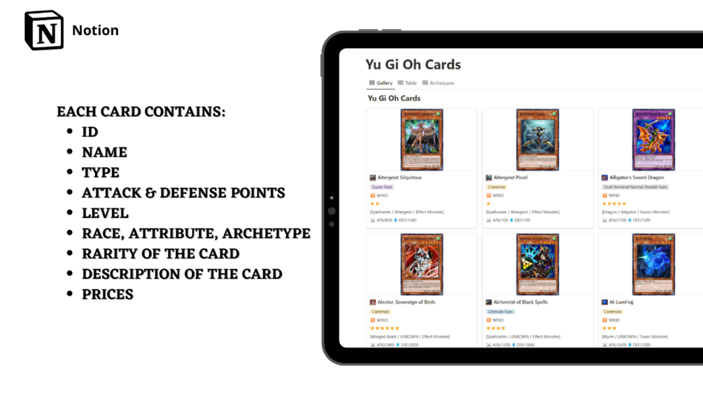 If you are a fan of Yu-Gi-Oh and duel cards game, this template is for you. I automated the update of cards thanks to the Yu-Gi-Oh Pro Deck API.